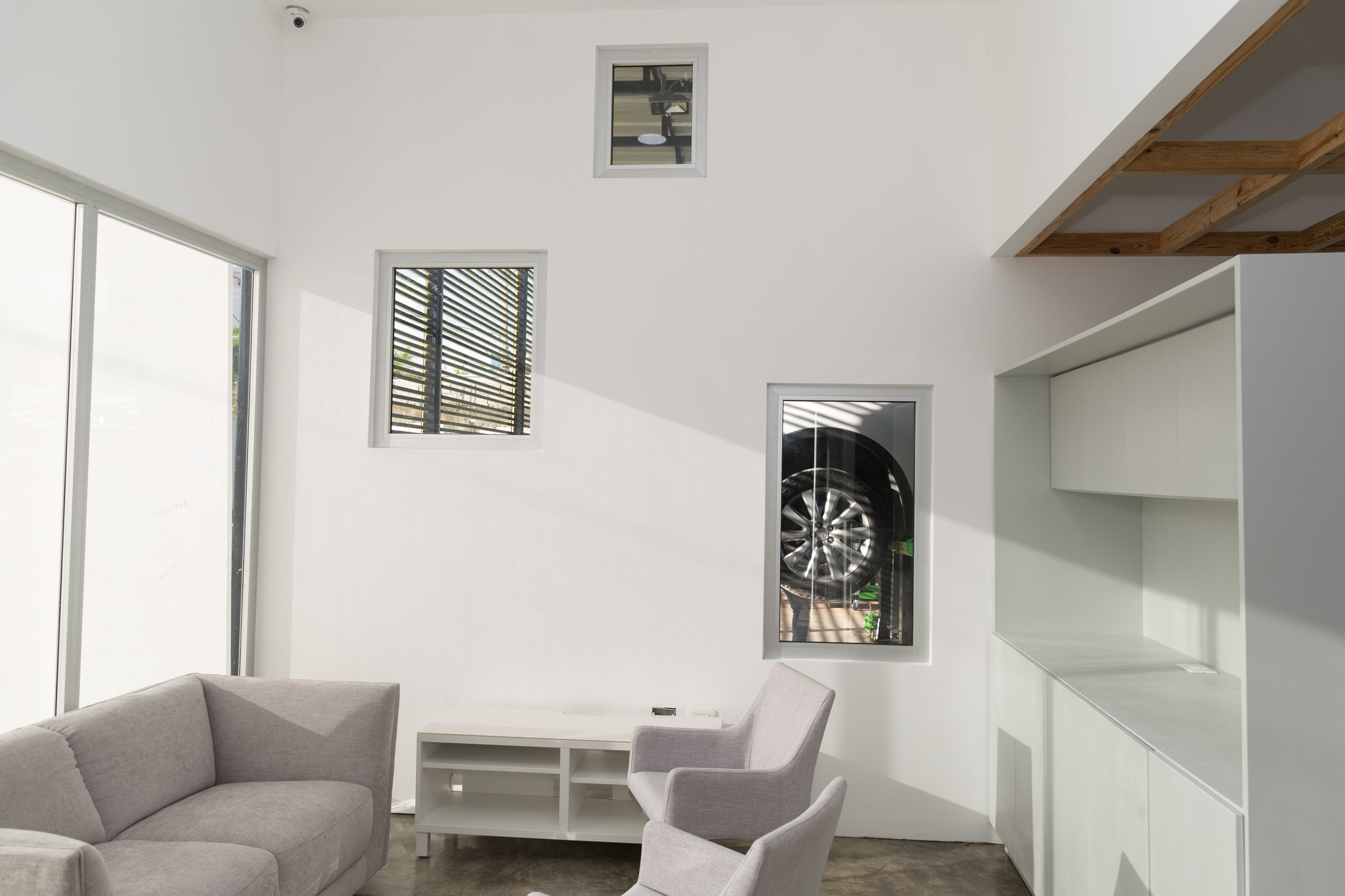 ¿Cómo hacer un centro de servicio automotriz que aporte a la ciudad? La intencion de este proyecto fue exponer la labor diaria que se realiza de una manera cuasi cinematográfica haciendo el vehiculo el protagonista, mirandolo a traves de un velo de color que a su vez le otorga caracter y presencia la volumen arquiectonico creado para emplazar la marca en el entorno urbano. Tanto desde el exterior como en su interior, la labor y el proceso que ocurre en el dia a dia se vuelve el principal efecto visual de este proyecto.